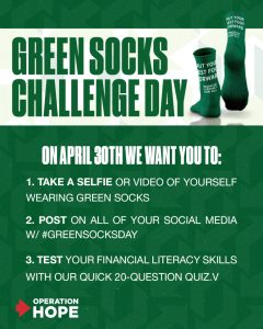 The Green Socks Day Challenge, is a nationwide movement to raise awareness about financial literacy in the month of April. It’s a fun, visible way for individuals, families, businesses, and communities to take action, start learning, and support financial education for all.