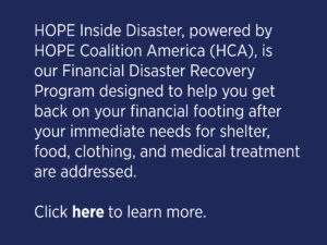 “Working in Disaster Operations is perhaps the most rewarding and often presents some of the most challenging tasks; however, the “HOPE” that we bring to individuals as they rebuild their financial profiles is unmatched. The “HOPE” that is realized in the delivery of our mission both informs and impacts the communities we serve for future generations.”